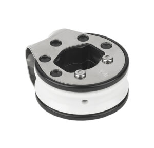 Uniek ontworpen om de furlinglijn buiten de scepters langs te leiden voor een nette en vrije geleiding naar de kuip. Voorzien van RVS zijplaten en een Delrin™ kogellager schijf voor minimale wrijving en hoge sterkte. Wordt vastgezet met een borgschroef, bereikbaar via de schijf.